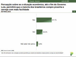 A percepção negativa sobre a promessa reflete o descontentamento com os rumos da economia, especialmente no que diz respeito ao custo de vida e ao acesso a alimentos tradicionais da mesa do brasileiro, como a carne bovina. Em 2022, durante a campanha eleitoral, Lula afirmou que voltaria ao Palácio do Planalto para melhorar a economia e devolver ao povo o direito de comemorar com um churrasco: “O povo tem que voltar a comer uma picanha e tomar uma cervejinha”, disse à época.