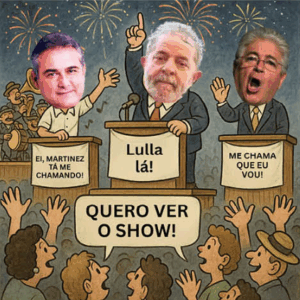 Em verdade, o descalabro absurdo e que mostra não só a tibieza do governo brasileiro, mas, sobretudo a sua postura infantilizada, que se resume numa reunião governamental portando bonés numa imitação reles da cultura americana que, historicamente, usa os bonés como nós o fazemos em relação a camisas de times de futebol. Claro, uma forma de homenagear a cultura esportiva nacional, a deles advinda do beisebol, e a nossa, do nosso tão amado futebol. Nem isso o Sidônio consegue imprimir originalidade…. Não há como deixar de expressar a mais absoluta vergonha do compadre Lulle.