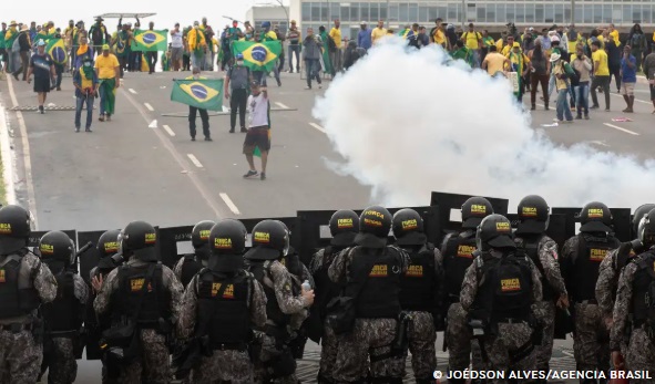 “O arbítrio, a violência e a quebra dos princípios republicanos, como se verificou com os atos criminosos perpetrados por multidões que invadiram os prédios dos Três Poderes em 8 de janeiro de 2023, facilitados pela omissão dolosa de autoridades responsáveis pela segurança institucional”, argumentou o relator.
